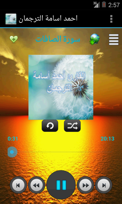 محتوى التطبيق: سورة الصافات بصوت القارئ احمد اسامة الترجمان