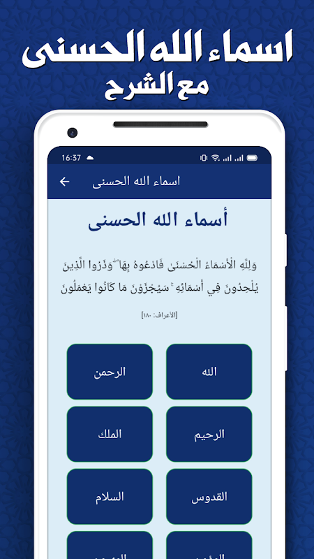 Приложение содержит много важных функций: Священный Коран в аудио и письменном формате, чтобы вы могли читать и слушать одновременно, множество мольб и различных мольб для молитвы и мольбы и чтения их каждый день, электронные четки сложны и смарт, с помощью которого можно хвалить и просить прощения без подключения к интернету, хадисы Пророка и Сунны. Приложение также включает в себя самые красивые имена Бога с объяснением. По свидетельству Пророка, да благословит его Аллах и приветствует, он сказал: (Воистину, у Бога девяносто девять имен — сто минус одно — кто запомнит их, тот войдет в Рай) Согласен.