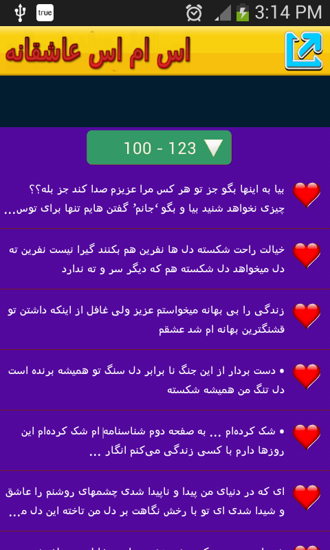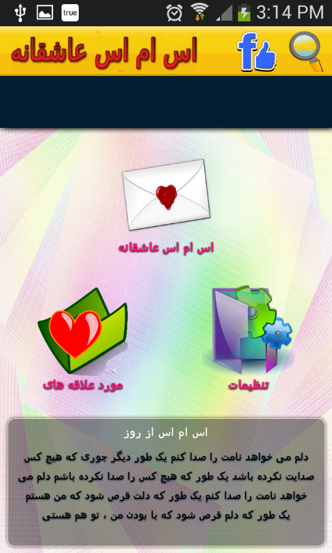 مجموعه ای از ۲۰۰ پیامک عاشقانه زیبا و جدید با قابلیت رونوشت ، اشتراک گذاری و ارسال پیامک و برخورداری از رابط کاربری ساده و زیبا