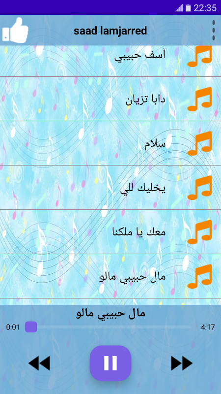 التطبيق بدون انترنت يقدم لك مجموعة من اغاني المختارة بعناية لتستمع إليها في أي وقت ومن دون الحاجة إلى الاتصال بالإنترنت.