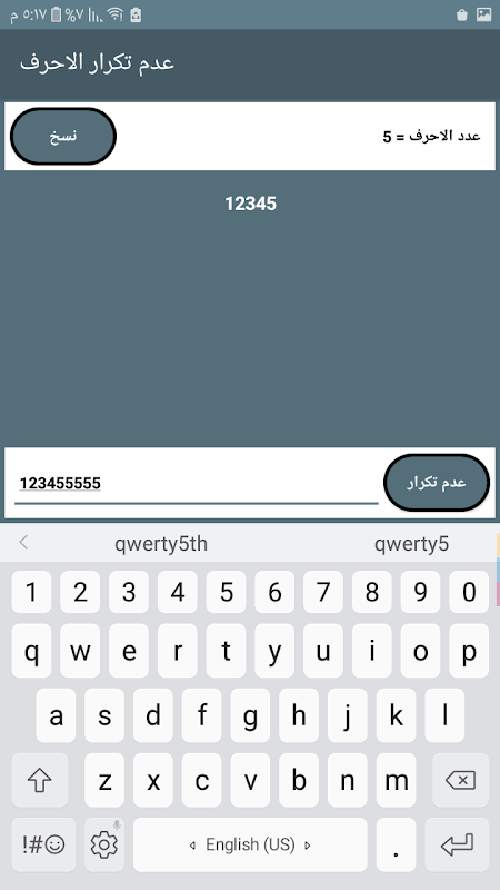 مجرد كتابتك لنص يقوم التطبيق بفحص النص واذا وجد حرف مكرر يقوم بحذفة