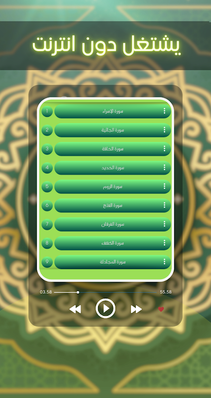 Приложение чтеца Шейха Хамзы Аль-Фар без интернета содержит записи Священного Корана с: