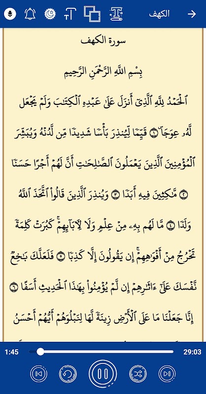 ميزة تكبير الخط لتسهيل قراءة سور القرآن الكريم.