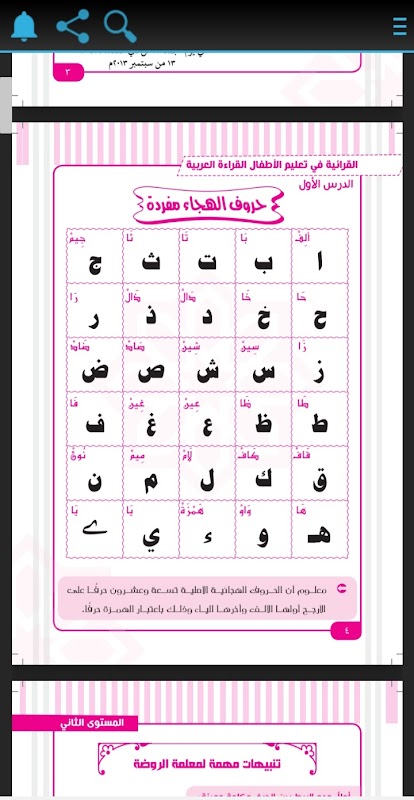 تطبيق تعلم العربية بسهولة يحتوي على :