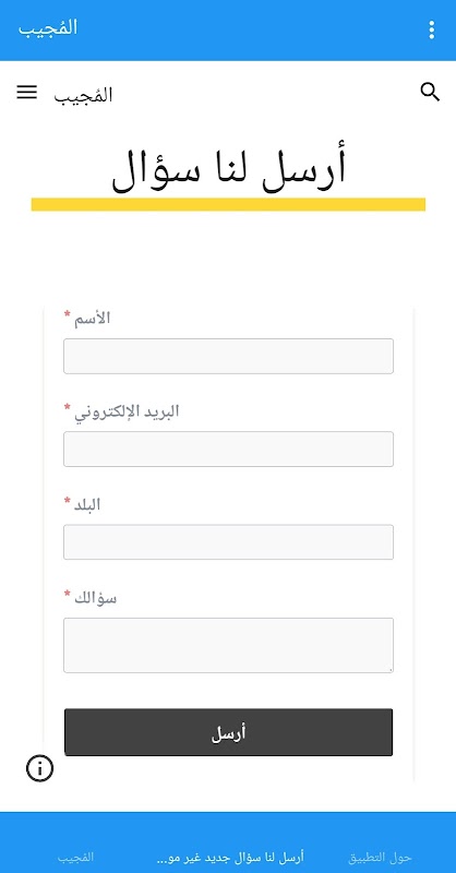 - أمكانية أرسال سؤال غير متوفر داخل التطبيق ليتم الأجابة عليه و أضافته لتطبيق