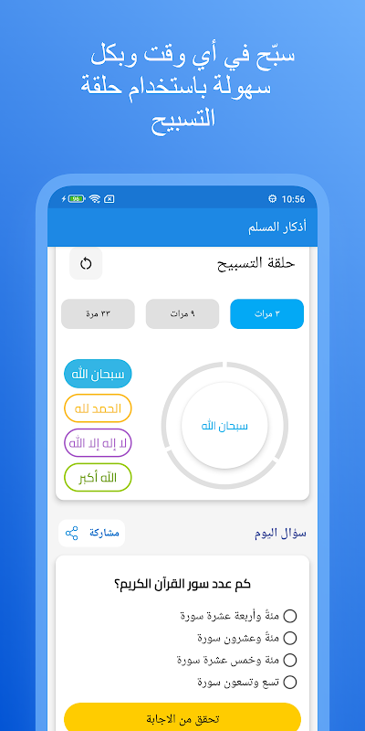 Приложение для зикра и молений с ежедневным напоминанием и мусульманской крепостью для укрепления веры