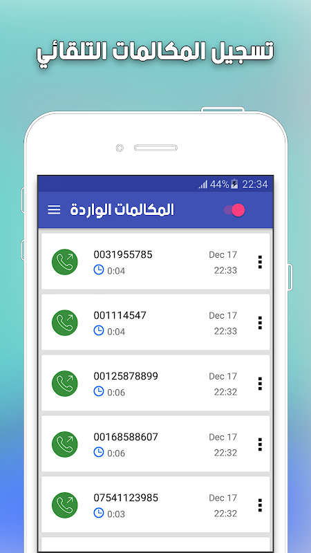 برنامج يمكنك من تسجيل جميع المكالمات الهاتفية تلقائيا بدون علم سواء الواردة أو الصادرة مجانا و بدون انترنت حيث يدعم جميع اجهزة الاندرويد كما أن التسجيل يتم بشكل أوتوماتيكي