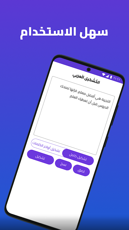 👈 توفير الوقت والجهد: بدلاً من البحث عن قواعد التشكيل والتفاصيل ا للغوية في الكتب والمصادر الأخرى، يمكنك الاعتماد على التطبيق لتوير الوقت والجهد والحصول على النتائج المطلوبة بسرعة.