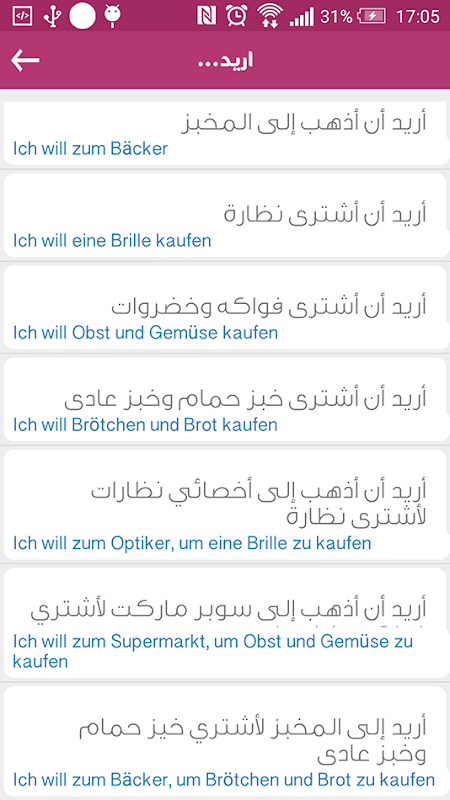 كما أنه مخصص للصغار والكبار. كل جملة لها ترجمتها باللغة الالمانية والعربية.