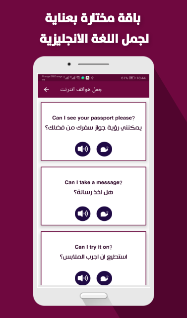 الكلمات اللغة الانجليزية و قواعد اللغة ويوجد جمل جاهزة منطوقة وعملنا علي توفير ناطق الي ليتيح لك نطق اي شئ بالانجليزية تريده ويوجد ايضا قصص انجليزية مسموعه ومرئية والكثير داخل التطبيق ويوجد ايضا لدينا داخل التطبيق اكثر من 60 الف كلمة انجليزية داخل مترجم تستطيع ترجمة اي كلمة تريد