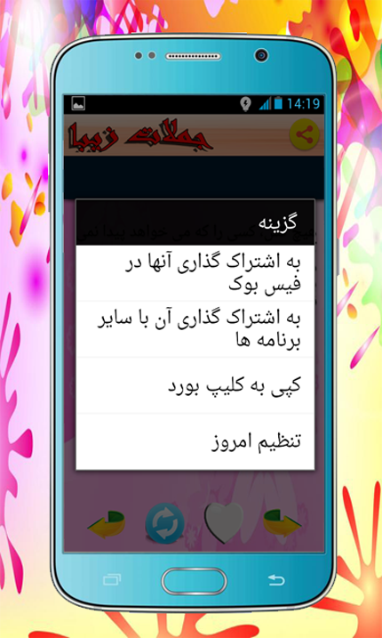 Красивые предложения программы персидского языка. Сочетание лучших и самых красивых слов, он содержит коллекцию особых любовных посланий и включает предложения о любви, грустные предложения, текстовые сообщения, романтические предложения, старые предложения, короткие предложения. Романтические стихотворные предложения, чистые предложения
