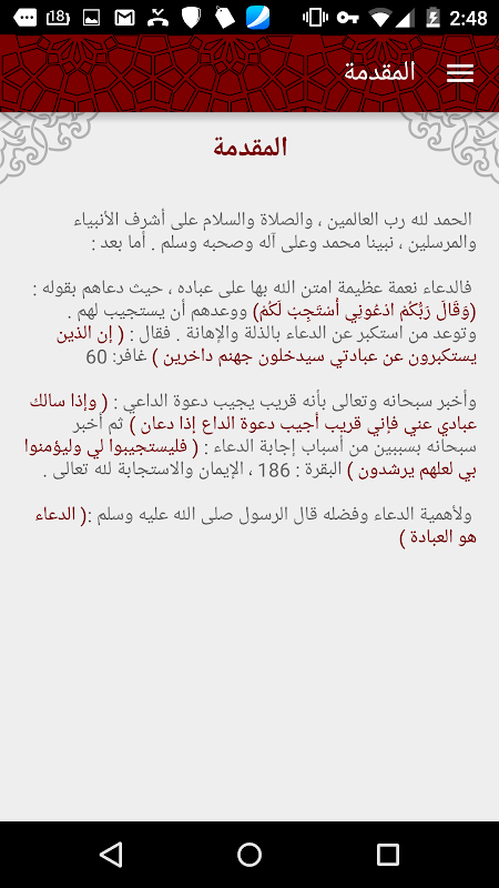 التطبيق عباره عن نسخه الكترونية جميله من كتاب (جوامع الدعاء من الكتاب و السنة يليه الأذكار الشاملة و الرقية و التحصينات الشرعية).