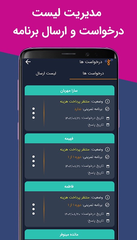 - مشاهده لیست درخواست برنامه