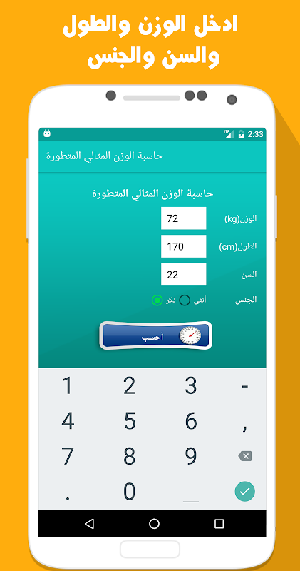 • حاسبة الوزن المثالي المتطورة скриншот 1