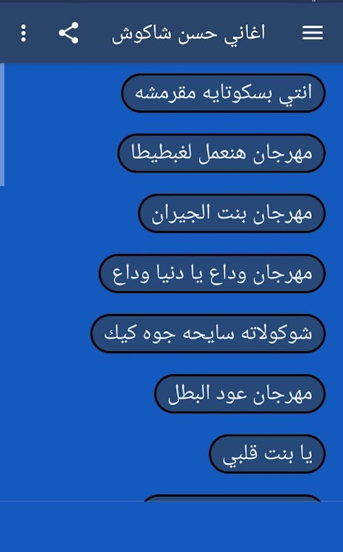 هذا التطبيق يضم كل أغاني حسن شاكوش بدون انترنت هو تطبيق يحتوي على جميع أغاني حسن شاكوش الحصرية ومهرجانات الفنان حسن شاكوش
