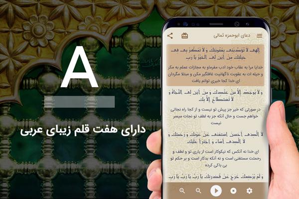 دعای ابوحمزه ثمالی صوتی. با ظاهری مدرن، بدون نیاز به اینترنت با اسکرول (پیمایش) خودکار و همراه با تم شب.