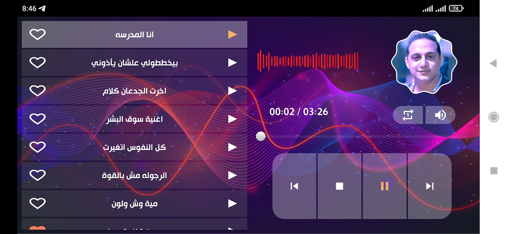 • يمكنك الإنتقال تلقائياً بين الأغاني