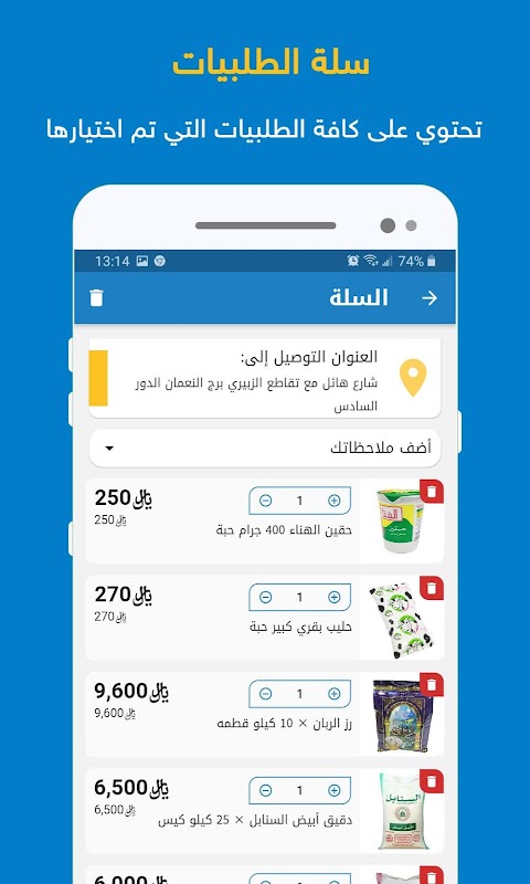 Приложение для доставки основных продуктов питания домой. Сервис в настоящее время охватывает Сану, и вскоре больше провинций и больше продуктов.