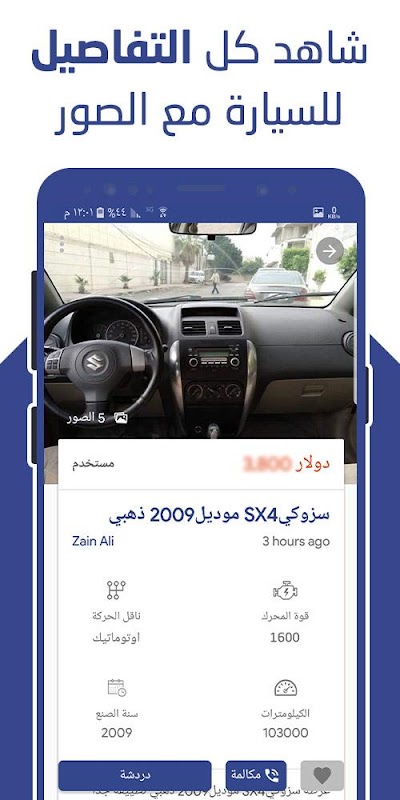 - مراسلة المعلن من نفس التطبيق وتقديم العروض للسيارة (دردشة او اتصال).