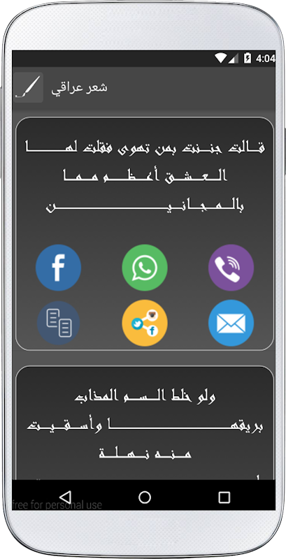 و يوجد في التطبيق شعر حب عراقي كما اضيف الى التطبيق البعض انواع شعر رومنسي و راقي و كمان اخترنا لكم شعر خليجي و ايضا حب من طرف واحد