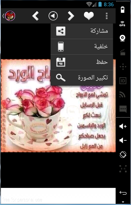 - مشاركة الصور على الواتس اب، تويتر والفسبوك بالإضافة إلى العديد من الشبكات الإجتماعية