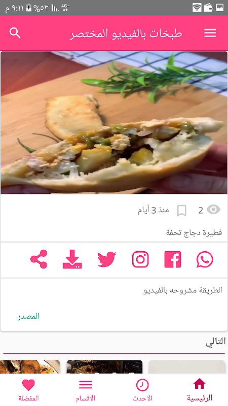 مرتبه شكلك منظم داخل الاقسام. ،كما يحتوي على شرح مفصل لاعداد اشهر الاطباق والماكولات العربية والاجنبيه ، كما يدعم مشاركة الفيديوهات وحفظها بسهوله ونظام المفصلة لتعود للفيديو باي وقت تريده ,مع نظام الاشعارات عند اضافة اي فيديو جديد