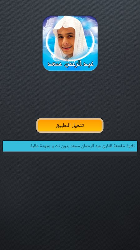 مرحبا بكم في تطبيق القران الكريم عبد الرحمن مسعد بدون نت. يمكنكم تطبيق تطبيق القران الكريم عبد الرحمن مسعد من الإستماع إلى القران الكريم بصوت عبد الرحمن مسعد بدون نت بجودة ممتازة، بالاضافة الى أن تطبيق تلاوة القرآن بصوت عبد الرحمن مسعد مجاني ويمكن تحميل تطبيق القرآن الكريم بصوت عبد الرحمن مسعد بكل سهولة لكي تستمتع بتلاوة القرآن الكريم بصوت الشيخ عبد الرحمن مسعد أينما تشاء وفي اي وقت تريد وايضا قمنا بتصميم برنامج القران الكريم عبد الرحمن مسعد بدون نت ليكون سهل الاستخدام بواجهة بسيطة جذابة وسلسلة وسهلة الاستعمال.