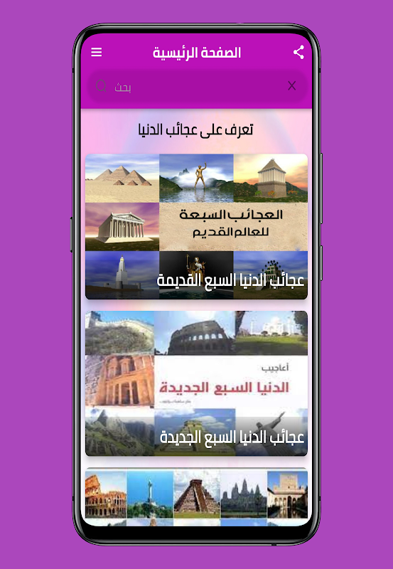 التطبيق يحتوي على عجائب الدنيا السبعة بدقة وبجودة عالية