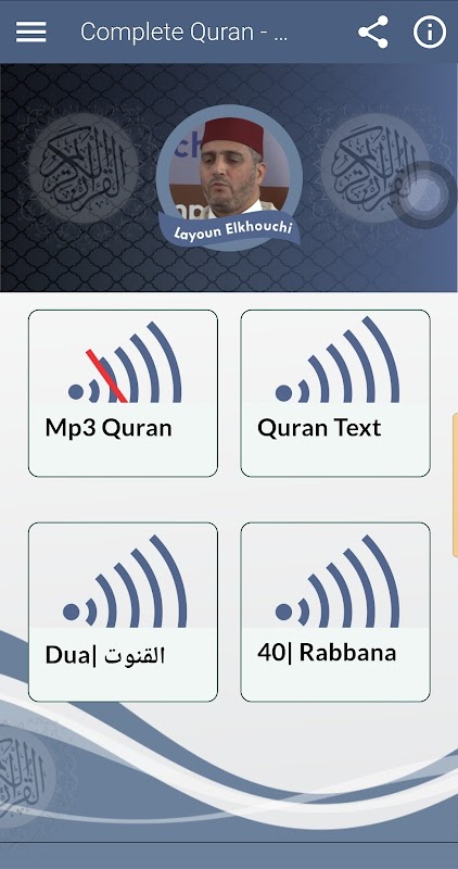 Бесплатное приложение для Android включает в себя полное чтение Корана голосом шейха.