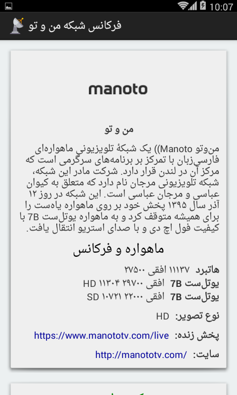 С помощью этого приложения вы имеете частоту персидских спутниковые каналы вашего мобильного телефона.