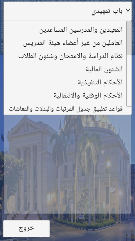 6- أبواب مفصلة مخصصة لكل ما يتعلق بمواد أعضاء هيئة التدريس و المعيدين و المدرسين المساعدين و إتحادات الطلاب و العاملين فى الجامعة من غير أعضاء هيئة التدريس.