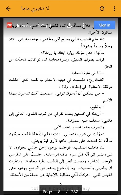 تطبيق يمكنك من خلاله قراءة رواية لا تخبري ماما بكل سهولة وكذلك يمكنك تحمل الرواية على جعازك بسرعة اكبر