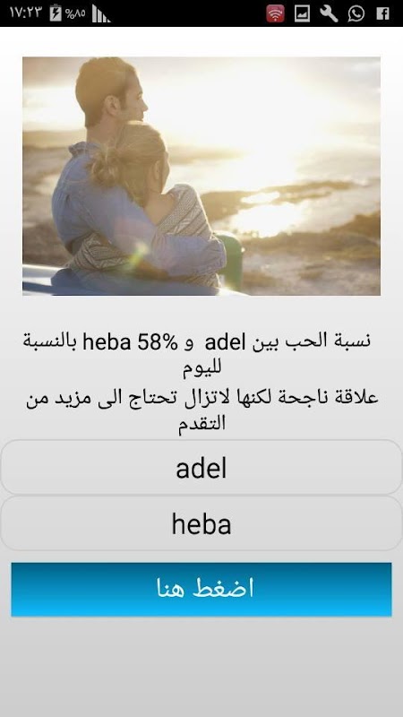 تطبيق بسيط لقياس نسبة الحب بين شخصين طبعاً بشكل عشوائي