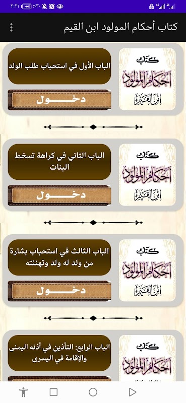 Книга «Тухфат аль-Маудуд би-Ахкам аль-Мауд» написана Ибн Кайимом аль-Джаузией. В ней рассматриваются вопросы, касающиеся новорождённых, от рождения до их воспитания и воспитания, включая: желательность желания иметь сына, нежелание огорчать девочек, призыв к молитве и призыв к молитве за новорождённого, акика, бритьё и раздача волос в качестве милостыни, наречение имени, обрезание, воспитание детей и справедливое отношение к ним. Ибн аль-Кайим, да помилует его Аллах, сказал во введении: «В этой книге мы намеревались упомянуть о правилах, касающихся новорожденного, которые касаются его рождения, пока он ещё мал, начиная с его акики и её правил, бритья головы, наречения имени, обрезания, мочеиспускания, прокалывания ушей, а также правил его воспитания и этапов его жизни с момента, когда он был каплей семени, до его последнего пребывания в Раю или Аду. Поэтому она получилась полезной по своему смыслу книгой, содержащей в себе пользу, которую трудно найти в чём-либо другом, например, замечательные толкования и хадисы, призывающие к необходимости знать их и их обоснования, а также объединять их различные аспекты, и вопросы права, которые трудно найти изучающему, и мудрость, которая так нуждается в знании. Это книга, доставляющая удовольствие читателю, изумляющая того, кто её читает, подходящая для этой жизни и для будущей, и каждый, у кого были дети, нуждается в её содержании. У Аллаха я ищу успеха и прошу Его для руководства путями праведности, ибо Он – Щедрый и Милостивый. Я назвал её «Дар Возлюбленного с правилами новорождённого». Причиной написания этой книги Ибн аль-Кайимом было то, что его сын Бурхан ад-Дин был благословлён новорождённым, и у Ибн аль-Кайима в то время не было того, что он мог предложить своему сыну из мирских удовольствий, поэтому он составил эту книгу и передал её… Приложение работает в автономном режиме, имеет очень небольшой размер, имеет полный формат, крупный шрифт и полностью индексируется.