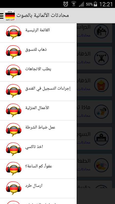 Приложение немецкого языка со звуком содержит произношение иностранного слова и его перевод на арабский язык. Обязательно произносите немецкое предложение после прочтения, чтобы вы могли научиться правильно произносить предложения, и, таким образом, вам было легко писать и слышать фразы.