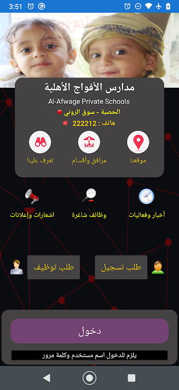 هذا التطبيق خاص بالمتابعة الرقمية والارشفة الالكترونية لأحداث وفعاليات اليوم الدراسي . ووسيلة التواصل بين المدرسة والاهالي , يهتم بمتابعة الطالب يوميا وتسجيل واثبات مجريات اليوم الدراسي ومشاركتها بشكل فوري مع ولي الأمر . ويهدف من جهة أخرى إلى توزيع المهام بين المعلمين بحيث يخف الحِمل ويسهل العمل ولا تتراكم المهام . فكل معلم يهتم بمعلوماته ويقوم بادخال بياناته ويرد على ملاحظاته واستفساراته بسهولة ويسر . يقوم التطبيق بتوفير كل العمليات اللازمة للإدارة ، وعمل الاحصائيات والمقارنات وتسهيل الحصول على المعلومة والوصول إلى البيانات لمن له صلاحيات الوصول .إدارة متكاملة عبر الهاتف بدون الحاجة الى جهاز كمبيوتر أو موقع اليكتروني حيث يتم التحكم والتعامل مع كل البيانات عبر تطبيق الهاتف . مع امكانية الربط المباشر الى جهاز الكمبيوتر بطبيعة الحال. تم تقسيم التطبيق إلى مستويات بحيث تحدد المدرسة الطموح الذي تريد الوصول إليه فقد تبدأ مدرسة فقط بتسجيل الدروس والواجبات ثم بعد ذلك تريد تفعيل المستوى التالي حتى تصل إلى تفعيل كامل التطبيق ليشمل كل العمليات من الدروس والواجبات ليصل الى ادخال الدرجات وتسجيل الملاحظات الاكاديمية والتقييم السلوكي والمهاري للمواد ، كما يمكن تفعيل التشات والمحادثة الفورية ، أو إرسال الدروس فيديو وفتح نقاش وتفاعل أو الوصول في النهاية الى الحصة التفاعلية عن بُعد بالصوت والصورة.. والعديد من التفاصيل والخيارات الأخرى حسب رغبة المدرسة .