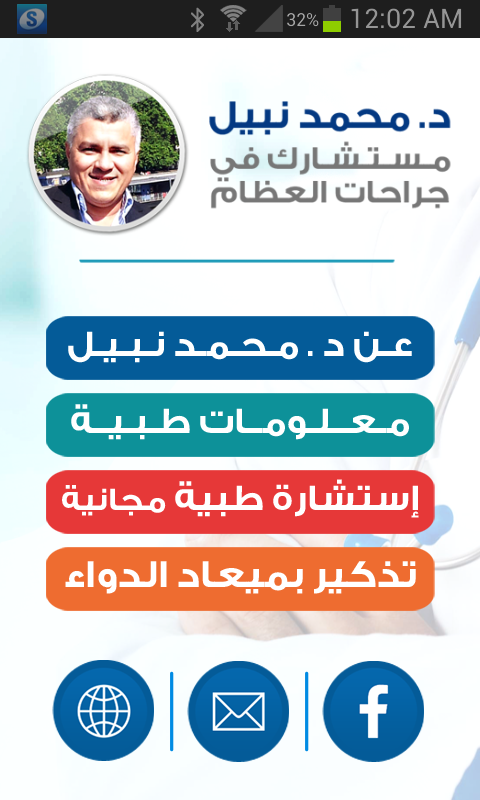 Приложение "Медицинский советник" в ортопедической хирургии врач хирург д-р Набиль Мохаммед Хассуне является простой в использовании приложение с множеством полезных функций.