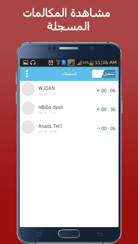 سجل المكالمات الصادرة و الواردة و استمتع بإعادة الاستماع اليها في أي وقت تريد .