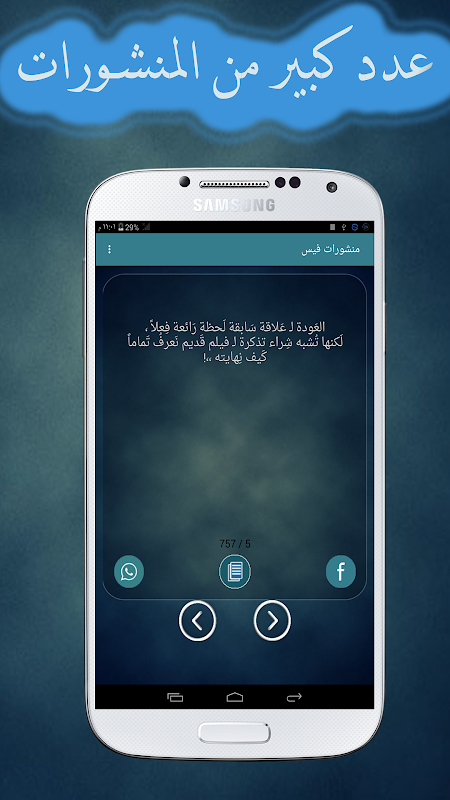 حيت حتوي التطبيق على عدد كبير من المنشورات المتنوعة لتناسب جميع الاشخاص وايضا يوجد منشورات دينية ومنشورات حكم وخواطر ومنشورات رومانسية