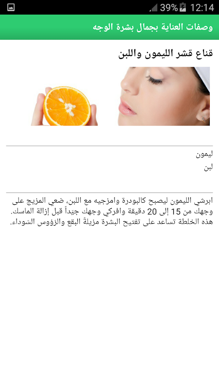 دا كنت تريد ان يصبح وجهك صافي و جميل يجب عليك تطبيق وصفات سهلة و سريعة لتبييض الوجه و الحل هنا في هذا التطبيق.