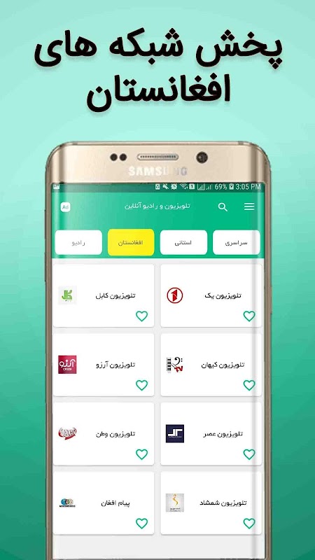 برنامه هاي مورد علاقه خود را از شبکه های تلویزیونی و شبکه های رادیویی موجود جستجو کنيد و به ليست علاقه مندي ها اضافه کنيد.
