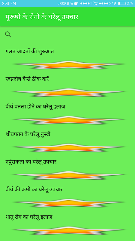 पुरूषो के रोगो is a very personal problem of men and women which they generally unable to discuss with any one,But पुरूषो के रोगो may not be underestimate,So We develop पुरूषो के रोगो in Hindi Application.