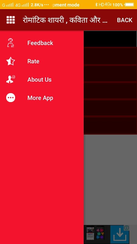 Egs: How to represent your emotions to make a relationship strong. How to win over your love if she is not happy with u. Here you can find kissing tips, love smses to send someone,shayaris,poems. You can get all tips related to love in this app. All the romantic hearts out there!!! This app is for you all. So go ahead and express yourself to your love. This app is useful for those who miss their love and want to sing romantic poems for them. This app has solutions for many such love related questions and the various categories present in this Romantic shayari sms poems app are: