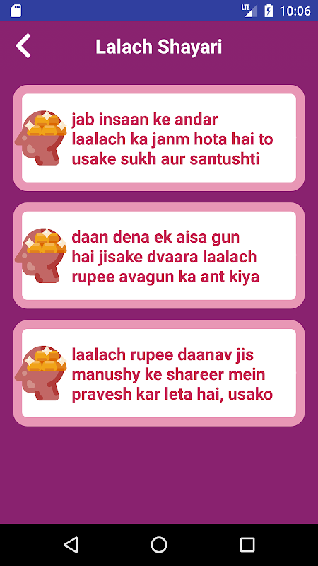 This is one of the best collection of latest Lalach shayari app which is totally free and no internet connection required . Greed is one of the important part of human life for desire for more food, money, power, etc. than you really need.