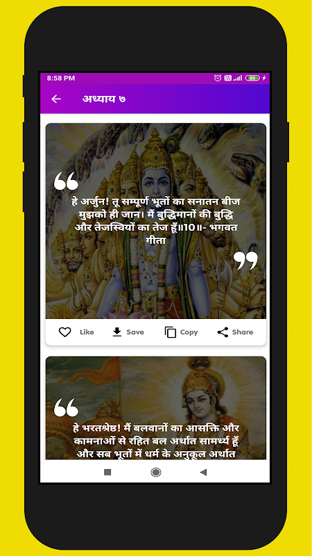 Ниже приведены некоторые особенности приложения Shrimad Bhagwat Geeta на хинди и английском языке для Android,