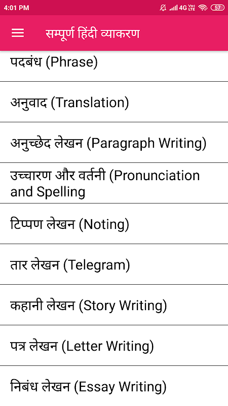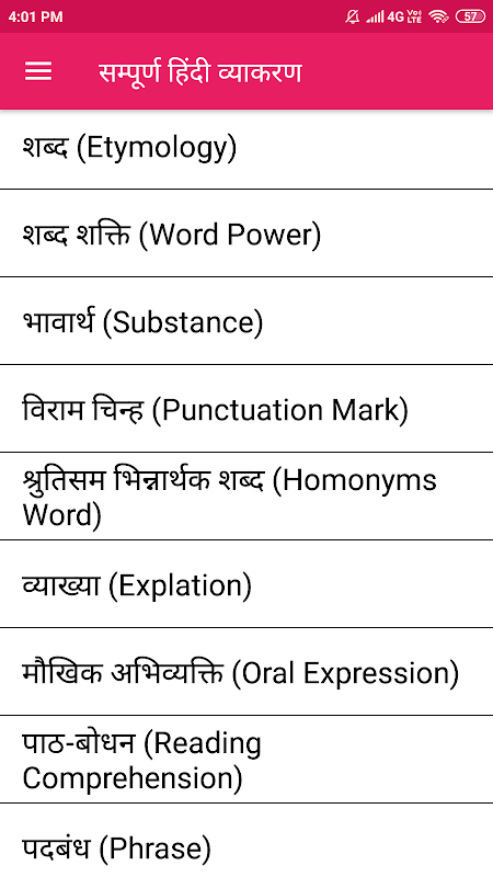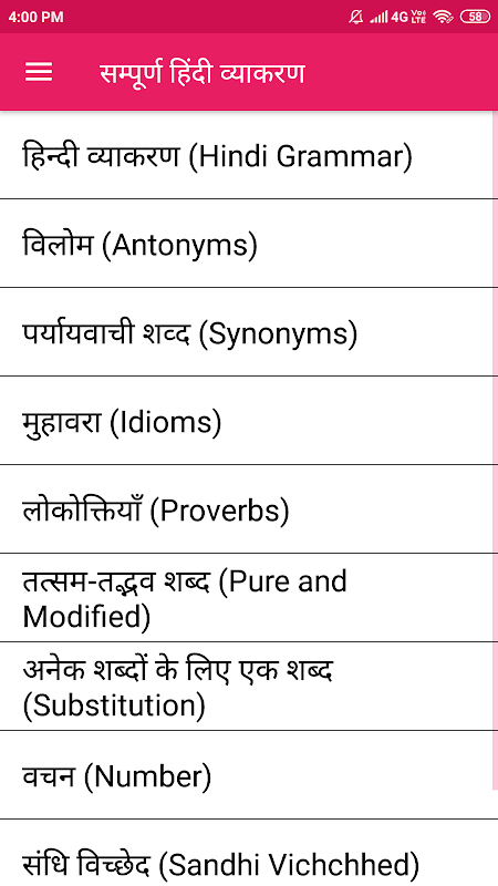 Hindi Grammar app Content