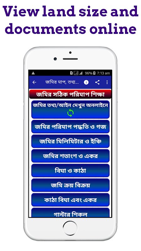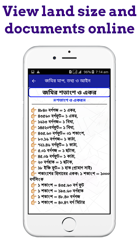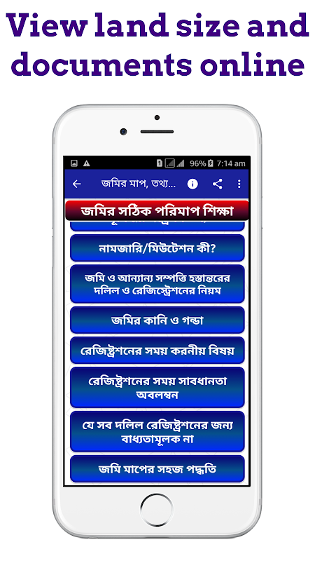 জমির খতিয়ান বের করতে আর কারো কাছে ঘুরতে হবেনা কারন এখন আপনে ঘরে বসেই অনলাইনের মাধ্যমে বের করতে পারবেন। তাছারা জমির মাপার ক্যালকুলেটর সহ জমির যাবতিয় বিষয় এই অ্যাপটিতে দেওয়া আছে। জমি সংক্রান্ত যাবতিয় তথ্য এবং জমির যত প্রকার হিসাব নিকাশ সবকিছুই এই অ্যাপসটির বিতরে পেয়ে যাবেন। তাই আর দেরি না করে এখনি ডাউনলোড করুন আমার এই জমির খতিয়ান অ্যাপসটিতে।
