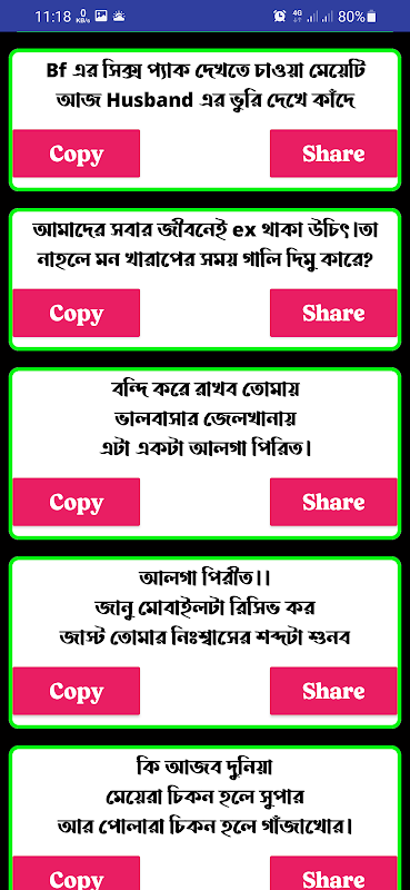 আপনাদের জন্যে এলাম বাংলা হাসির ট্রল আজাইরা ফানি স্ট্যাটাস এই অ্যাপ্লিকেশনটি।। এই ফানি ক্যাপশন গুলো বিভিন্ন যায়গা থেকে কালেকশন করা একাধিক বার বাছাই করা।
