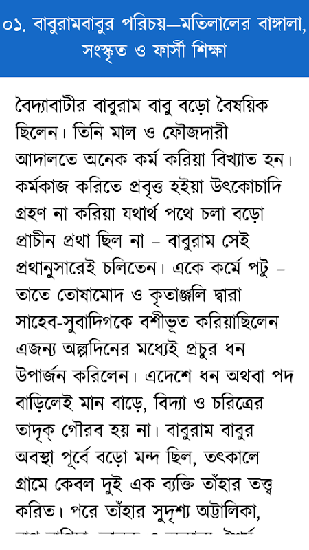 This app has been developed based on first novel of Bengali literature Alaler Ghorer Dulal. This app contains 30 list in first screen . After click on each item details will available