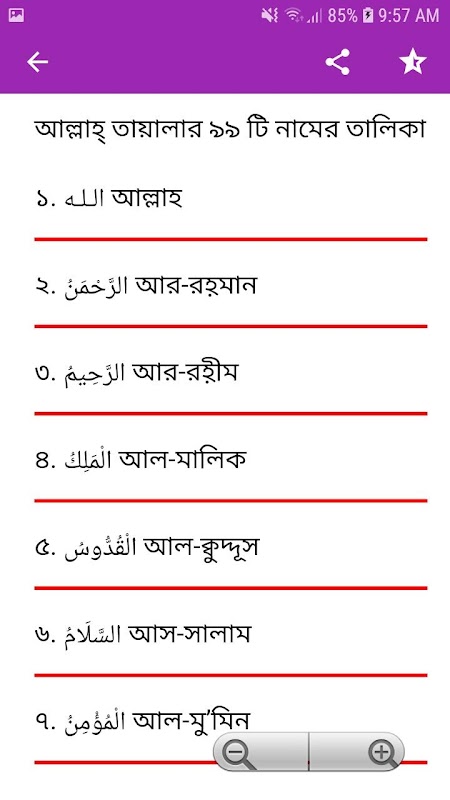 Информация আল্লাহ ৯৯ নাম অর্থসহ ফজিলত APK